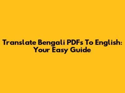 Translate Bengali PDFs To English: Your Easy Guide