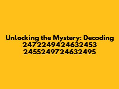 Decoding a numerical sequence like 2472249424632453 2455249724632495 can be a challenging but rewarding experience. It requires a combination of analytical skills, technical knowledge, and a healthy dose of curiosity. Don't be afraid to experiment with different techniques, explore different possibilities, and ask for help when you need it. The more you learn about the world of numbers, the better equipped you'll be to unravel the mysteries that lie hidden within them.