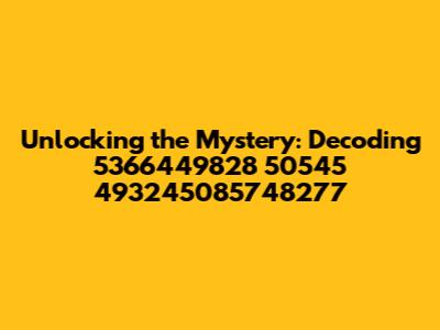 Alright guys, let's dive into this intriguing sequence: 5366449828 50545 493245085748277. At first glance, it looks like a jumble of numbers, right? But hey, everything has a story, and our mission is to figure out what this one is. We're going to break down possible interpretations, explore various angles, and see if we can make heads or tails of it. Whether it's a code, a reference number, or just a random string of digits, stick with me, and we'll unravel this mystery together. Let's get started and see where this numerical adventure takes us!