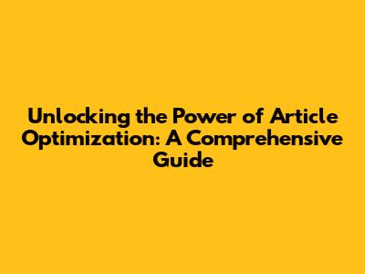 Understanding the Fundamentals of Article Optimization