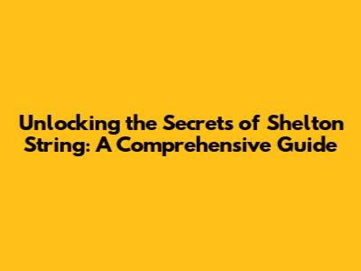 Hey guys! Ever heard of Shelton String? If you're scratching your head, no worries! We're diving deep into everything you need to know about this fascinating topic. This guide is your ultimate companion, packed with insights, tips, and tricks to help you understand and maybe even master the art of working with Shelton String. We'll explore its different facets, its applications, and how you can get started. So, buckle up, and let's unravel the mysteries of Shelton String together!