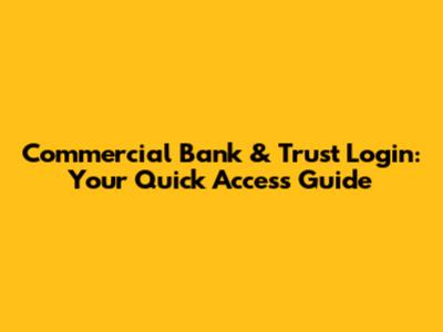 Commercial Bank & Trust Login: Your Quick Access Guide