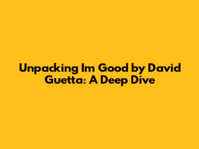 Hey everyone, let's dive into something cool today: David Guetta's super popular track, "I'm Good." This song has been absolutely everywhere, and for good reason! It's catchy, it's got a great vibe, and it just makes you wanna get up and move. We're gonna break down everything about this awesome track, from its origins and the genius behind it to its massive success. Get ready to have some fun exploring the world of electronic dance music (EDM) with one of the biggest names in the game. I think you'll find it's a pretty interesting story, and you might even discover something new about one of your favorite songs!