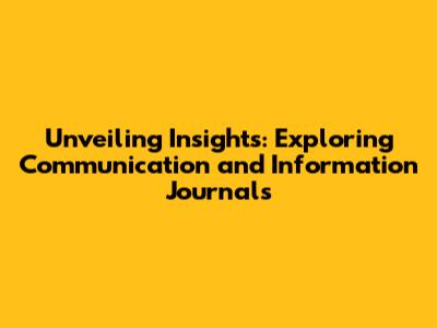 Basically, communication and information journals are your secret weapon for staying informed and engaged with the ever-evolving world of communication. Whether you are a student, a researcher, a professional, or just someone who is curious, these journals provide an invaluable resource for understanding how we communicate and interact with information.