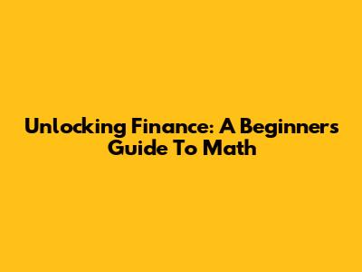 Unlocking Finance: A Beginner's Guide To Math