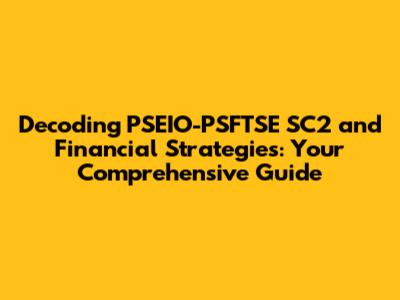 Hey there, finance enthusiasts and curious minds! Ever heard of PSEIO-PSFTSE SC2 and wondered what the heck it is? Well, you're in the right place! We're diving deep into the world of this unique financial concept, breaking it down, and exploring how it intertwines with savvy financial strategies. Buckle up, because we're about to embark on a journey that'll demystify PSEIO-PSFTSE SC2 and equip you with the knowledge to make smarter financial decisions. This article isn't just about definitions; it's about understanding how these concepts play a crucial role in building a robust financial future. We'll be covering everything from the basics to advanced strategies, all in a way that's easy to understand and implement. Whether you're a seasoned investor or just starting out, there's something here for everyone. We'll explore the core components of PSEIO-PSFTSE SC2, its implications, and how you can leverage it to your advantage. Get ready to transform your understanding of finance and take control of your financial destiny! We're going to break down the complexities, offer practical advice, and ensure you're well-equipped to navigate the financial landscape. So, grab your favorite beverage, get comfortable, and let's get started. By the end of this guide, you'll be well on your way to mastering PSEIO-PSFTSE SC2 and implementing financial strategies that truly work.