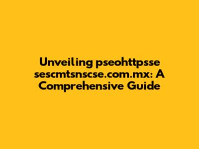 Hey everyone! Today, we're diving deep into the world of pseohttpsse sescmtsnscse com mx. Now, I know the name might seem a bit like alphabet soup at first, but trust me, understanding it is super important, especially if you're navigating the digital landscape. We'll break down what this is all about, what it does, and why you should care. Think of this as your go-to guide for everything related to this particular web address. Let’s get started and unravel the mysteries of pseohttpsse sescmtsnscse com mx together, and make sure you have all the knowledge you need. This guide is crafted to be your all-inclusive resource, designed to provide a comprehensive understanding of the topic, breaking down complex information into easily digestible pieces. No jargon, just clear explanations and valuable insights. Our goal is to equip you with the knowledge to navigate the digital world confidently, so let's jump right in. We will cover a lot of ground in this guide, and by the end, you'll be well-versed in the specifics of pseohttpsse sescmtsnscse com mx. So, sit back, relax, and prepare to become an expert! This article will explain everything you need to know about the topic. The intention is to give you a strong foundation of knowledge, and by the time you've finished reading, you'll feel confident and informed. Are you ready to dive in and get started? Let’s break it down and make things simple.