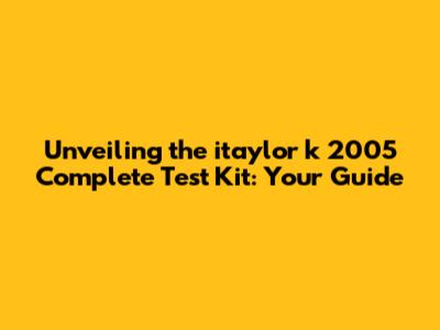 Demystifying the itaylor k 2005 Complete Test Kit Components