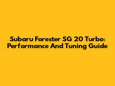 Subaru Forester SG 20 Turbo: Performance And Tuning Guide
