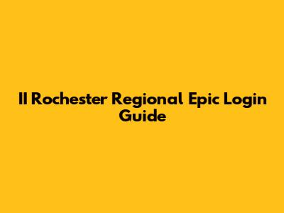 II Rochester Regional Epic Login Guide