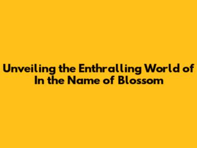 Hey there, bookworms and drama enthusiasts! Have you heard about the captivating world of 'In the Name of Blossom'? If not, buckle up, because we're about to dive deep into its mesmerizing plot, characters, and the overall experience. This isn't just any story; it's a journey, a whirlwind of emotions, and a tapestry woven with threads of love, sacrifice, and the relentless pursuit of one's dreams. 'In the Name of Blossom' is more than just a title; it's a promise of something beautiful, something poignant, and something that will stay with you long after you've turned the final page or watched the credits roll. So, get comfy, grab your favorite beverage, and let's unravel the secrets within this literary and cinematic gem. We'll be exploring the heart of the story, understanding the intricate relationships, and appreciating the masterful storytelling that makes 'In the Name of Blossom' such a standout piece. Ready to blossom with us?