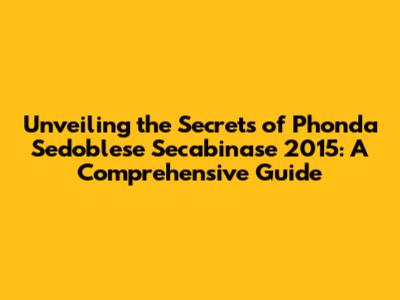 What Exactly is Phonda Sedoblese Secabinase 2015?