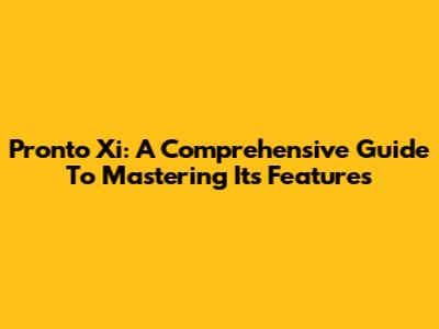 Pronto Xi: A Comprehensive Guide To Mastering Its Features