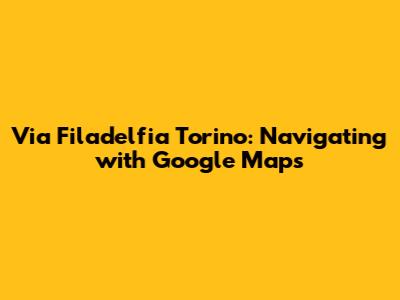 Hey there, fellow travelers and Turin enthusiasts! Ever found yourself scratching your head, trying to figure out the best way to get around a new city? Well, if you're planning a visit to the vibrant city of Turin and specifically need to navigate Via Filadelfia, you're in luck! Google Maps is your trusty sidekick in this adventure. In this article, we're diving deep into everything you need to know about using Google Maps to explore Via Filadelfia Torino. We'll cover everything from finding your way around, discovering nearby points of interest, and even some cool tips and tricks to make your navigation a breeze. So, buckle up, and let's get started on this digital exploration of Turin!