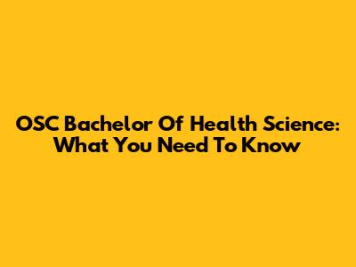 OSC Bachelor Of Health Science: What You Need To Know