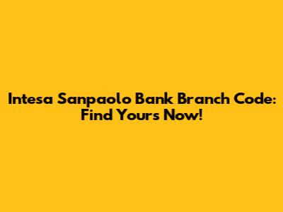 Intesa Sanpaolo Bank Branch Code: Find Yours Now!