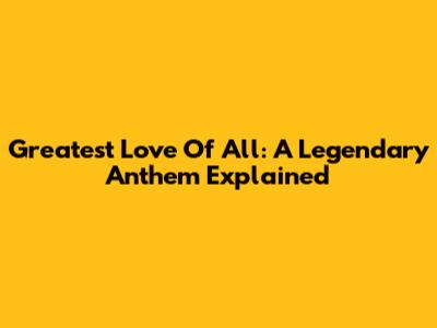 Greatest Love Of All: A Legendary Anthem Explained