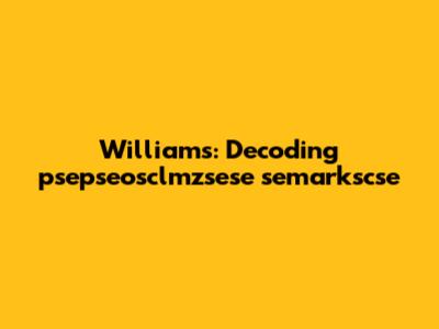 Ah, "Williams" – a name that most of us recognize! But what's it doing hanging out with "psepseosclmzsese semarkscse"? Well, names often provide crucial context. Is it a person's name? A company? A brand? Let's explore. If "Williams" is a person's name, then "psepseosclmzsese semarkscse" could be a project they're working on, a code name they've created, or even a username or password they use. It could also be a unique identifier associated with that person in a database or system. If "Williams" is a company or brand, then "psepseosclmzsese semarkscse" could be a product name, a service offering, or a marketing campaign. Companies often use unique and memorable names to differentiate their products and services from the competition. It could also be an internal code name for a project or initiative within the company. Maybe "Williams" is a reference to something else entirely. It could be the name of a place, a thing, or an idea that's related to "psepseosclmzsese semarkscse" in some way. For example, it could be the name of a research lab, a software program, or a scientific theory. To figure out the significance of "Williams," we need to consider the context in which it's being used. Where did you encounter this phrase? What was the surrounding conversation or text about? The answers to these questions can help us narrow down the possibilities and understand the relationship between "Williams" and the other terms. And, of course, it's always possible that "Williams" is simply a coincidence and has no direct connection to "psepseosclmzsese semarkscse." But, even in that case, it's still worth exploring the possibilities to see if we can uncover any hidden meanings or connections.