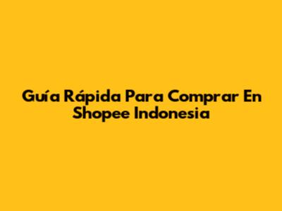 Guía Rápida Para Comprar En Shopee Indonesia