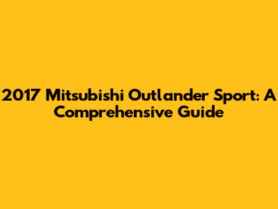 2017 Mitsubishi Outlander Sport: A Comprehensive Guide