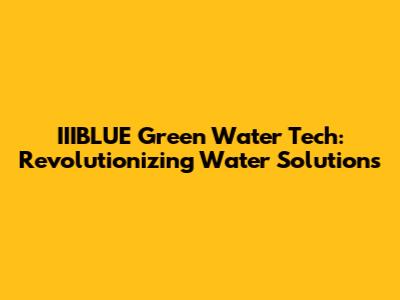 IIIBLUE Green Water Tech: Revolutionizing Water Solutions